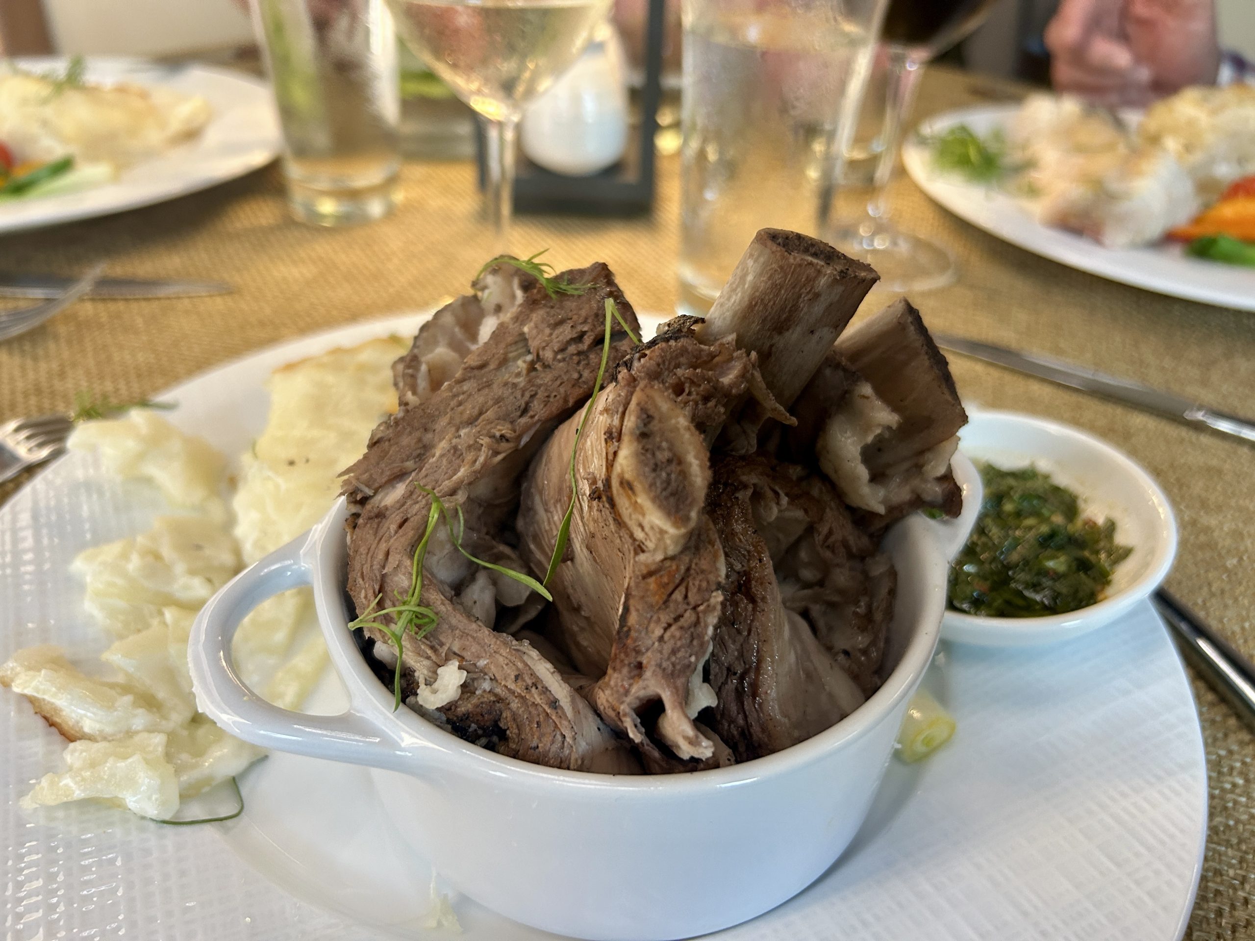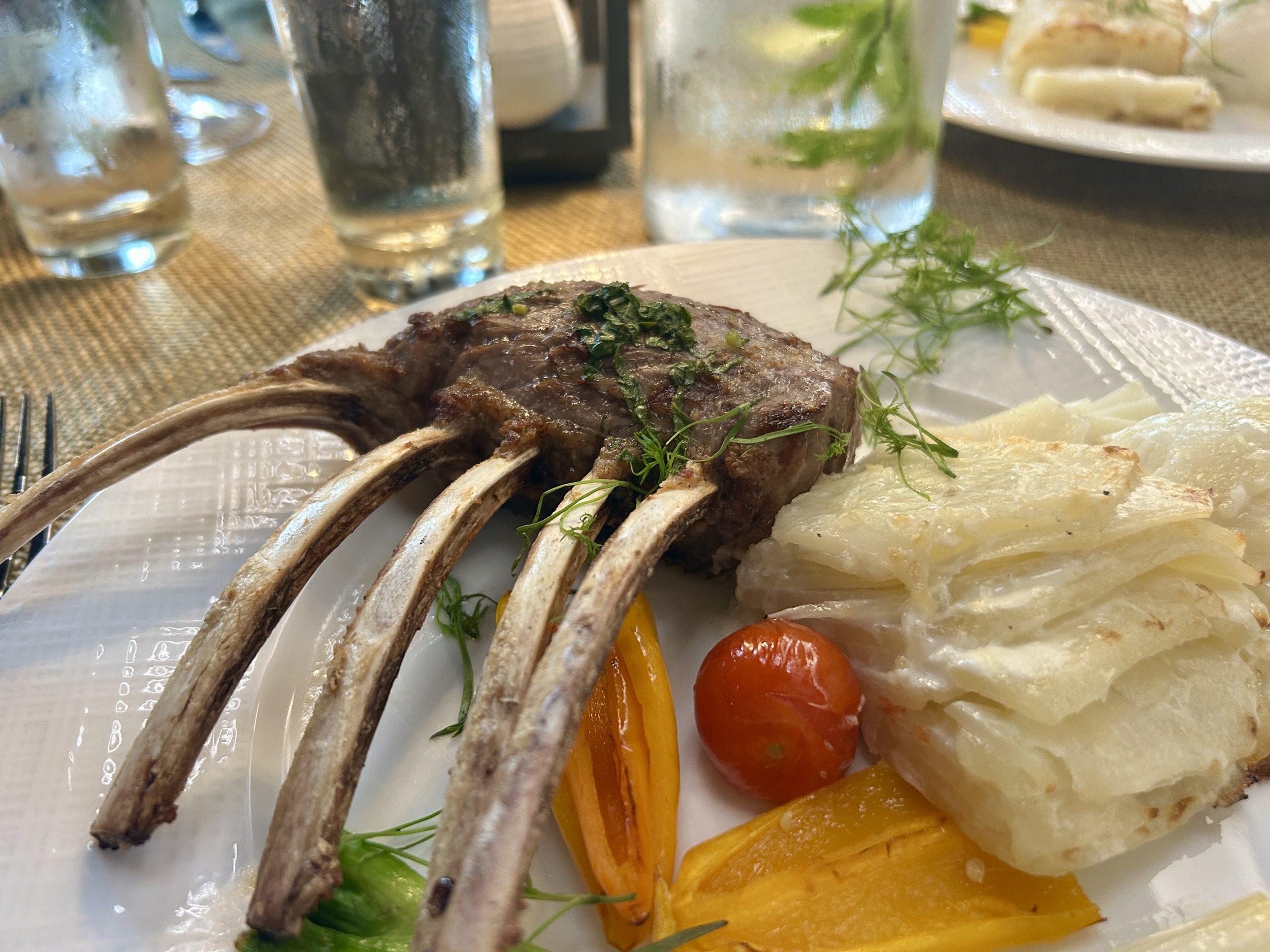 A newer Citrus County restaurant (Crystal River) Three Muskateers offers a gourmet menu with many different entrees. I had the delish veal ribs chops (a lot of food) Art and I split the yummy fennel salad. Mike had the lamb rack and Art and Karen had Chilean sea bass. Pricey but nice small restaurant.